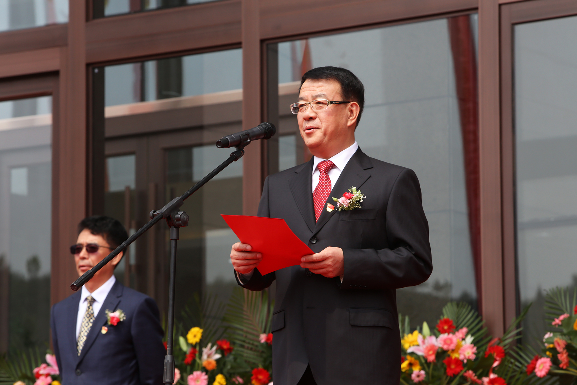 集团公司党委书记、董事长张建军在仪式上致辞。他首先代表集团公司党委和经理层向为国控大厦建设和搬迁工作付出辛勤劳动的同志们表示衷心的感谢,向乔迁新址的全体干部员工表示热烈祝贺,向所有关心和支持集团公司发展的领导和朋友表示崇高的敬意。
