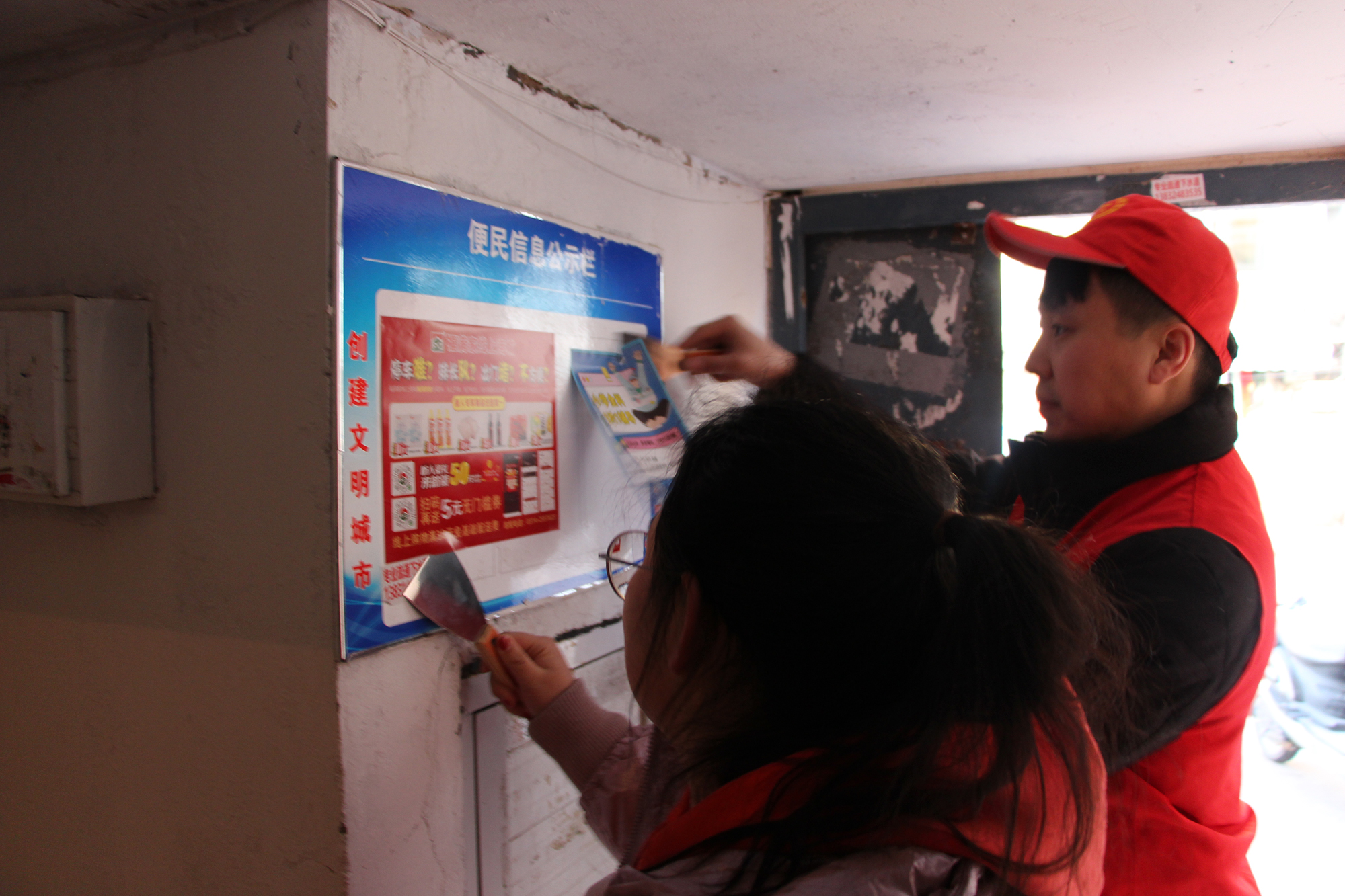 会后,集团公司与会龙山社区积极对接,安排人员分批次深入会龙山社区,与社区书记现场沟通并安排部署帮建工作。志愿者们向社区居民发放党的二十大精神宣传手册、对辖区内消防设施进行清洁检查、单元楼内外非法广告进行清除、对非机动车进行合理摆放、楼内外堆放垃圾杂物上门进行沟通,向居民讲解杂物堆积的潜在危害,进一步提升了社区居民的文明意识。