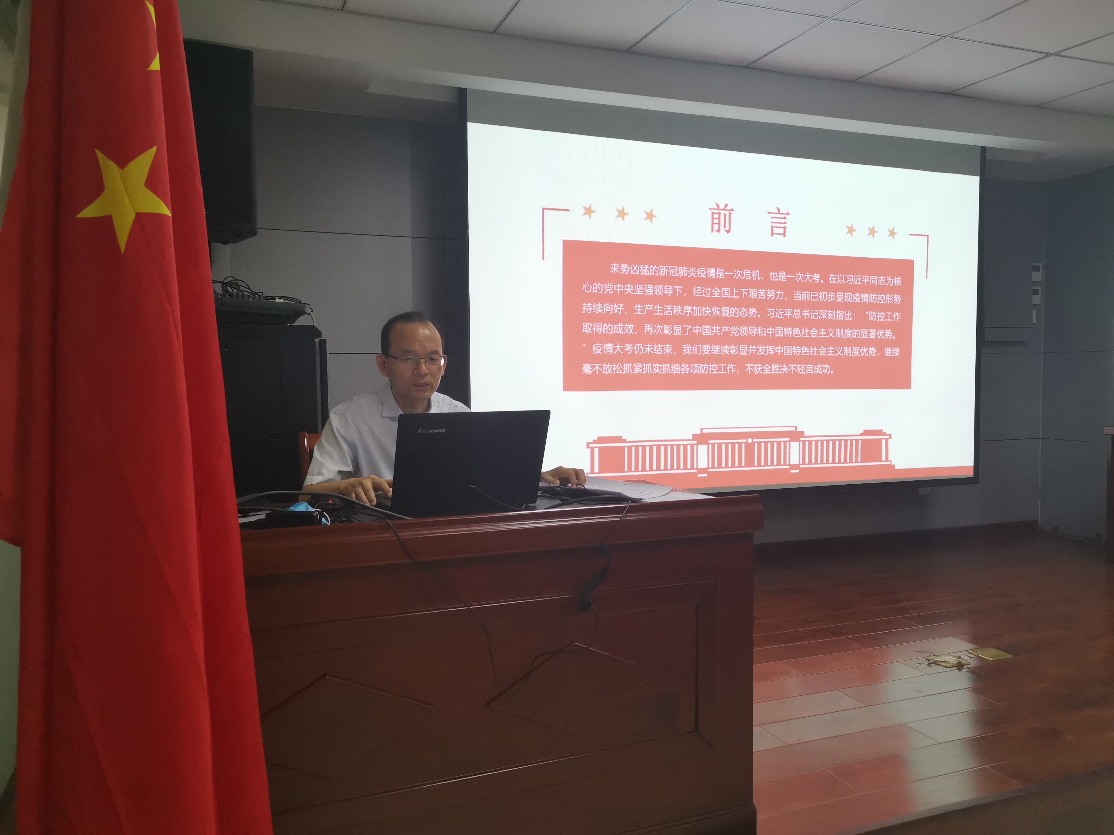 2020年7月2日上午,中共球友会网页版_球友会(中国)官方第二支部委员会支部书记焦俊良同志以“在大考中彰显中国特色社会主义制度优势”为题,为全体支部党员和入党积极分子上了一堂别开生面的党课。